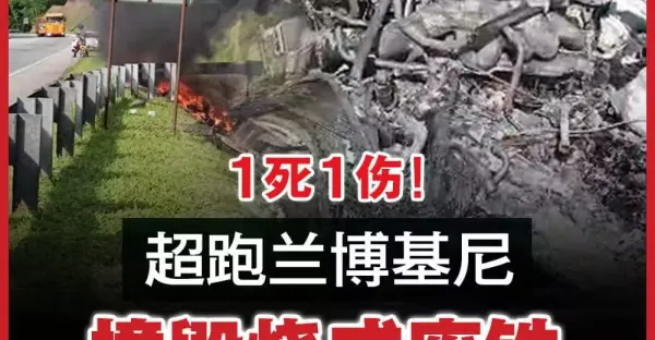 1死1傷 超跑蘭博基尼撞毀燒成廢鐵