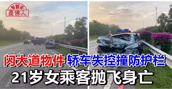 閃大道物件 轎車失控撞防護欄 21歲女乘客拋飛身亡