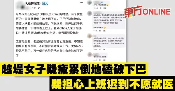 越堤女子疑疲累倒地磕破下巴 疑擔心上班遲到不願就醫