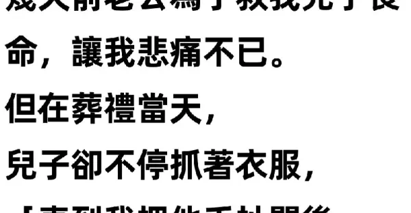 我與老公是重組家庭,幾天前老公為了救我兒子喪命, 讓我悲痛不已。但在葬禮當天,兒子卻不停抓著衣服,「直到我把他手扯開後」,我直接把靈堂給砸了…