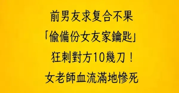 前男友求復合不果「偷備份女友家鑰匙」 狂.刺對方10.幾.刀!女老師血流滿地慘.死