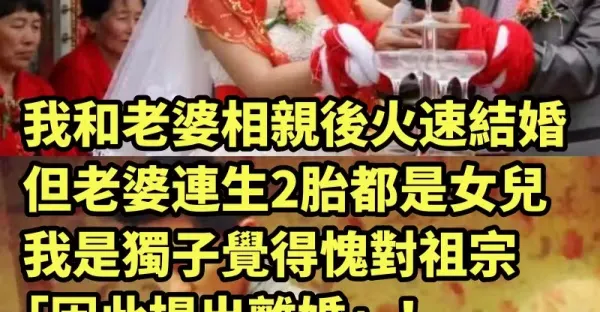我和老婆相親後火速結婚,但老婆連生2胎都是女兒,我是獨子覺得愧對祖宗「因此提出離婚」!5年後「在街上偶遇前妻」眼前一幕我腿軟