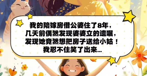 我的陪嫁房借公婆住了8年,幾天前偶然發現婆婆立的遺囑,發現她竟然想把房子送給小姑! 我忍不住笑了出來...