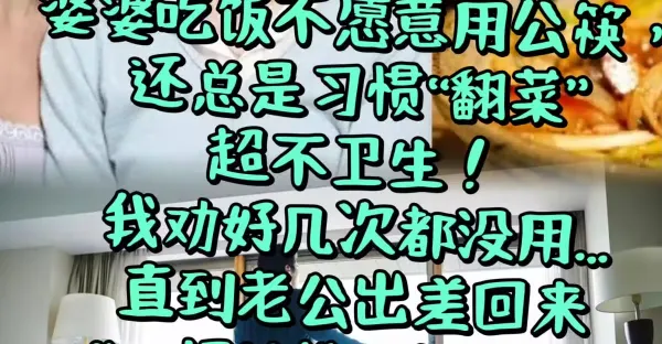 婆婆吃飯不願意用公筷,還總是習慣「翻菜」超不衛生!我勸好幾次都沒用...直到老公出差回來 「一招讓她瞬間改正」