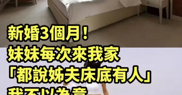新婚3個月!妹妹每次來我家「都說姐夫床底有人」,我不以為意「某次好奇一掀開」樂歪了…
