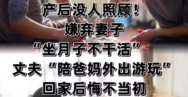產後沒人照顧!嫌棄妻子「坐月子不幹活」 丈夫「陪爸媽外出遊玩」回家後悔不當初