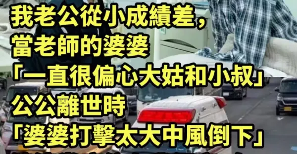 我老公從小成績差,當老師的婆婆「一直很偏心大姑和小叔」 公公離世時「婆婆打擊太大中風倒下」,婆婆半癱住在我們家7年,最近她睡夢中安詳離世「我收到一封律師函」...
