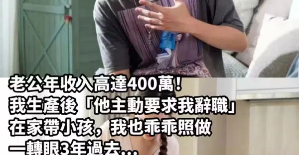 老公年收入高達400萬!我生產後「他主動要求我辭職」在家帶小孩,我也乖乖照做,一轉眼3年過去...最近他卻突然罵我:「沒賺錢每天好吃懶做!」 我委屈又無奈「婆婆教我一招我照做」老公馬上腿軟道歉 #婆婆明理又智慧