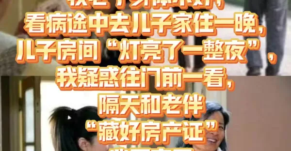 我老了身體不好,看病途中去兒子家住一晚,兒子房間「燈亮了一整夜」,我疑惑往門前一看,隔天和老伴「藏好房產證」 心死離開