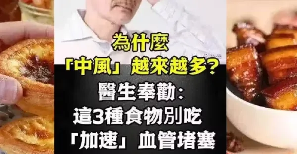 為什麼現在「中風」越來越多!醫生奉勸 這3種食物別吃,會「加速」血管堵塞!