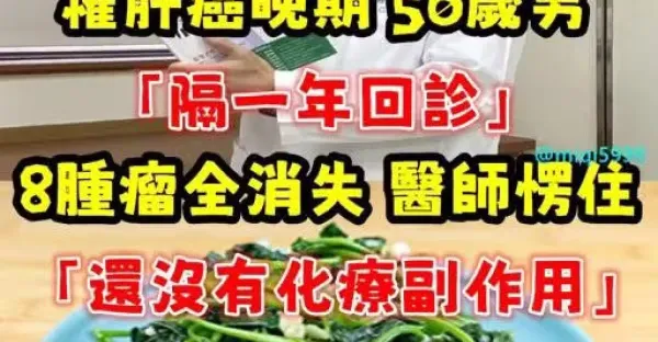 50歲男 罹肝癌晚期「隔一年回診」 8腫瘤全消失 醫師愣住「還沒有化療副作用」全靠這盤青菜