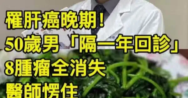 50歲男 罹肝癌晚期「隔一年回診」8腫瘤全消失 醫師愣住「還沒有化療副作用」全靠這盤青菜