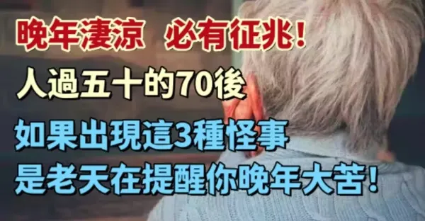 晚年淒涼!必有徵兆! 人過五十的70後,如果出現這3種怪事,是老天在提醒你,晚年大苦!