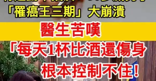 有運動不抽煙!50多歲男子「罹癌王三期」大崩潰 醫生苦嘆「每天1杯比酒還傷身」:根本控制不住❗