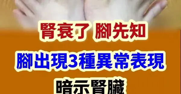 腎衰了,腳先知。腳出現3種異常表現,暗示腎臟快要「撐」不住了