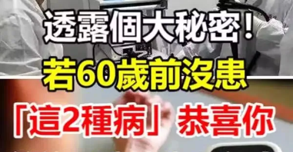 透露個大秘密❗若60歲前沒患「這2種病」恭喜你:往後罹癌機率低很多