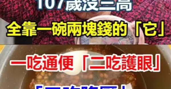 107歲沒三高❗ 長壽秘訣是一碗兩塊錢的「它」 「一吃通便」「二吃護眼」「三吃降壓」
