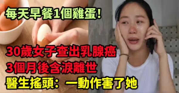 每天早餐1個雞蛋!30歲女子「查出乳腺癌」3個月後含淚離世 醫生搖頭:一動作害了她…