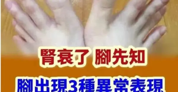 腎衰了,腳先知!腳如果出現3種異常表現,暗示腎臟快要「撐」不住了