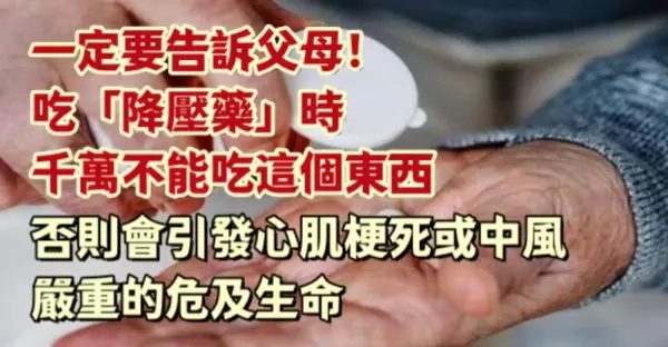 一定要告訴父母!吃「降壓藥」的時候千萬不能吃這個東西,否則會引發「心肌梗死或中風」,嚴重的危及生命~