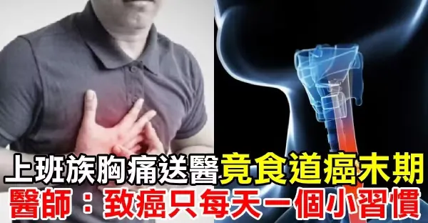 28歲上班族突然「胸痛」送醫,檢查竟「食道癌末期」!醫師:致癌只因他每天「一個小習慣」!一定要看看