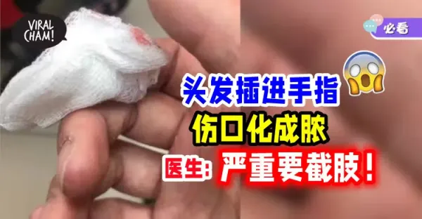 【頭髮也是傷人武器❗】頭髮插進手指「傷口化膿」⚡ 醫生警告 : 嚴重的話會截肢!