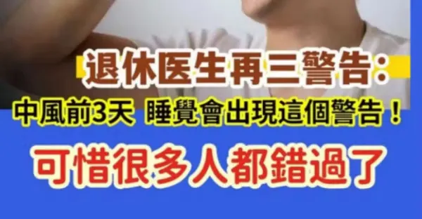 退休醫生再三警告: 中風前3天, 睡覺會出現這個訊號 ! 早1天發現都能救命, 可惜很多人都錯過了