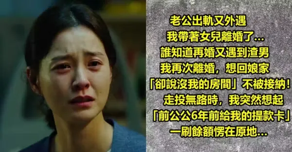 老公出軌又外遇,我帶著女兒失婚了…誰知道再婚又遇到渣男我再次失婚,想回娘家「卻說沒我的房間」不被接納! 走投無路時,我突然想起「前公公6年前給我的提款卡」一刷餘額愣在原地…