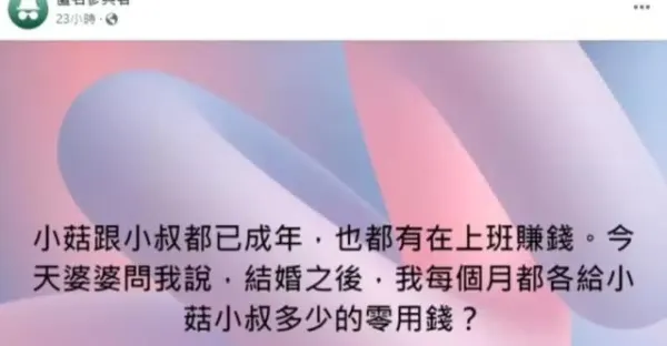 小姑、小叔都已成年、在上班賺錢,今天準婆婆卻問我:「結婚後,妳每月要給小姑小叔多少零用錢?」我要怎麼回答,才能委婉拒絕😞😞