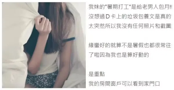 說是暑期打工!她崩潰發現「妹妹偷玩包養網」被老男人包月 狂賺10萬、拿名牌包「求問該怎麼辦」