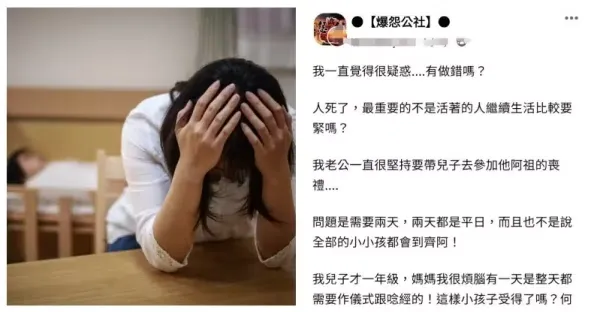孩子太小了!尪堅持「小一兒請兩天假」參加阿祖喪禮😫😫她爆氣問「不去就不孝嗎」網罵翻...
