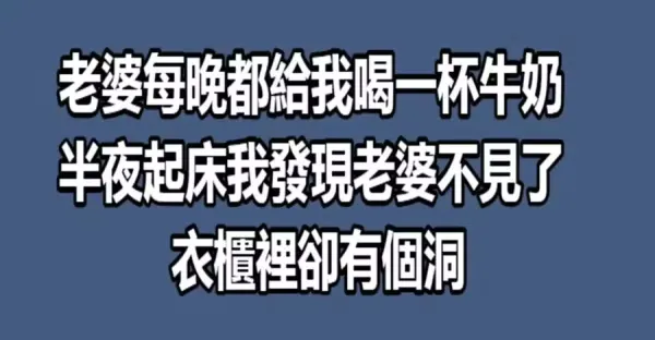 老婆每晚都給我喝一杯牛奶,半夜起床我發現老婆不見了,衣櫃裡卻有個洞!