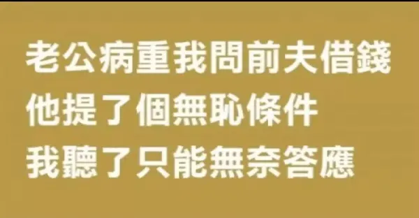 老公病重我問前夫借錢,他提了個無恥條件,我聽了只能無奈答應!
