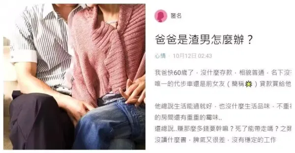沒存款沒房!60歲普男爸「身邊女友沒斷過」次次劈腿告終 女兒不解問「阿姨們到底圖啥」網友曝關鍵