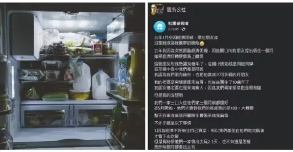 包吃包水電!他帶妻小「借住友人家1個月」最後變1年 翻冰箱被罵「氣炸發文公審」:有能力就該大方