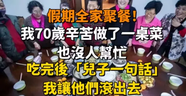 假期全家聚餐!我70歲辛苦「做了一桌菜」也沒人幫忙,吃完後「兒子一句話」我讓他們滾出去