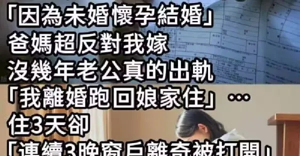 我當年「因為未婚懷孕結婚」爸媽超反對我出嫁!沒幾年老公真的出軌「我失婚跑回娘家住」…住3天卻「連續3晚窗戶離奇被打開」!第4晚我裝睡著「半夜偷偷張開眼睛」一看崩潰了!!