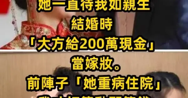 母親走後,父親娶了繼母,她一直待我如親生,結婚時「大方給200萬現金」當嫁妝。前陣子「她重病住院」我才打算動那筆錢,一看「ATM畫面」慌忙打給老公:怎麼會這樣…