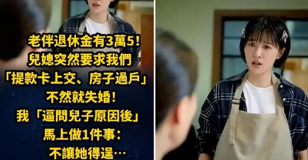 老伴退休金有3萬5!兒媳突然要求我們「提款卡上交、房子過戶」不然就離婚!我「逼問兒子原因後」馬上做1件事:不讓她得逞…