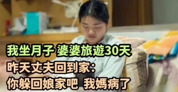 我坐月子婆婆旅遊30天,昨天丈夫回到家:你躲回娘家吧,我媽病了