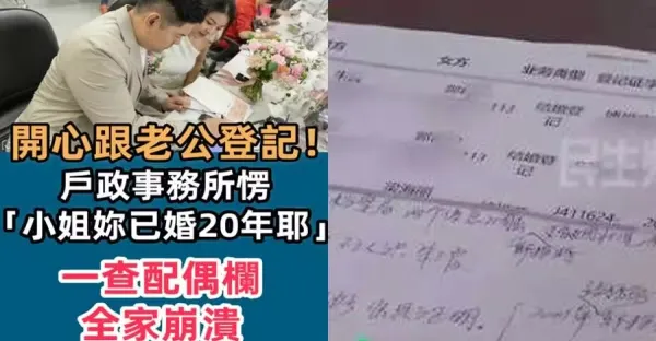開心跟老公登記!戶政事務所愣「小姐你已婚20年耶」…一查配偶欄全家崩潰~
