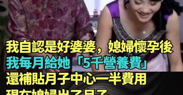 我自認是好婆婆,媳婦懷孕後,我每月給她「5千營養費」、還補貼月子中心一半費用,現在媳婦出了月子,竟要求「給錢才能看孫」!媳婦看我沒要匯錢的意思,直接打來說了一句...