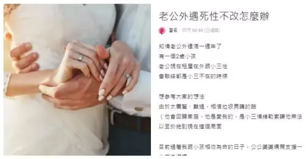老公外遇1年了,在外面和小三住, 我遲遲沒有決定離婚…如果不離就是各過各的,我不用付房租,每月有生活費、一台車、卡任我刷;如果要離,我就得付房租、車貸,但能擺脫爛關係,我到底應該怎麼辦?