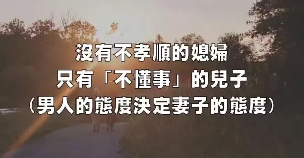 沒有不孝順的媳婦,只有「不懂事」的兒子!(男人的態度,會決定妻子的態度)
