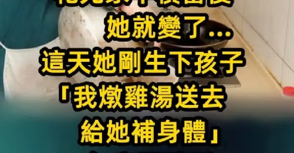 平常媳婦很孝順,自從丈夫生重病花光家中積蓄後,她就變了… 這天她剛生下孩子「我燉雞湯送去給她補身體」,無意間聽到「她對親家母說的話」我。。。