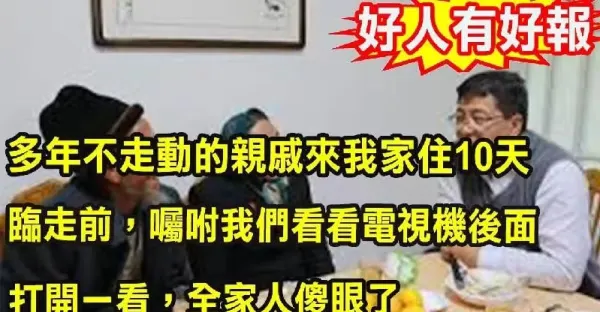 多年不走動的親戚來我家住10天,臨走前,囑咐我們看看電視機後面 …