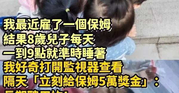 我最近雇了一個保姆,結果8歲兒子每天一到9點就準時睡著,我好奇打開監視器查看,隔天「立刻給保姆5萬獎金」:長期聘用妳!