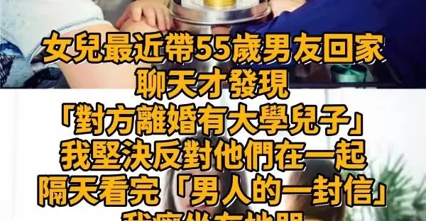 女兒最近帶55歲男友回家,聊天才發現「對方失婚有大學兒子」,我堅決反對他們在一起,隔天看完「男人的一封信」我癱坐在地哭