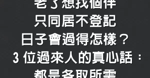 老了想找個伴,只同居不登記日子會過得怎樣?3位過來人的真心話:都是各取所需