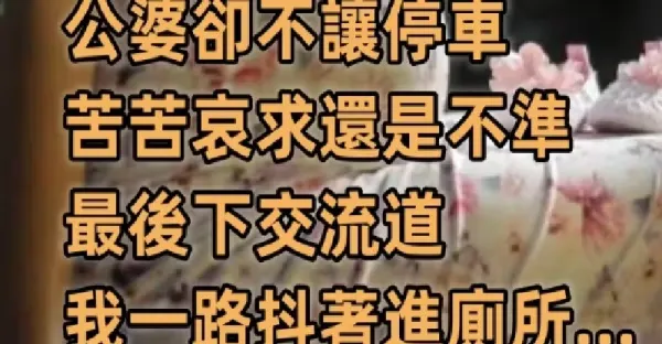 我懷孕隨著夫家南下掃墓,途中尿急公婆卻不讓停車,苦苦哀求還是不準,最後下交流道,我一路抖著進廁所…而老公一旁補刀讓我徹底心寒~